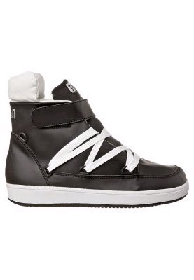 Fresco: Sneakers STORM da Nat-2 in nero. Semplicemente alla moda, la combinazione di nero come la pece e luminoso tacco scarpa bianca. Optical convincere le sneaker alta con linee pulite. La punta arrotondata è completata da cuciture discreto in nero. Innovativa è l'allacciatura incrociate che corre verso il tallone. Per una vestibilità sicura assicura l'ampio velcro. La lingua morbida imbottitura rende la scarpa da tennis - insieme al basso peso - piacevole e confortevole. L'ultimo tocco alla sneaker da un'etichetta d'argento stampato sul retro. del tutto convincente: tempesta, la sneaker raffreddare in nero da Nat-2.