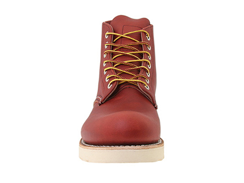 Tomaia di cuoio durevole con il marchio rosso impresso di Wing® per uno sguardo alla moda e robusto